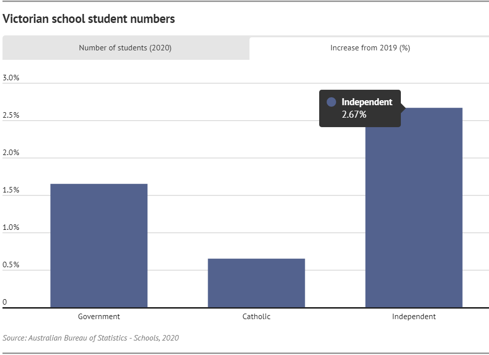 目前, 在 一. 官方数据显示,如今,有近151,000名学生(占维州学生总人数的15%)就读于私立学校,最新增长率超过了公立学校和天主教学校。 维州私立学校入学率增长了2.67%;天主教学校的入学率仅增长了0.65%;公立学校的入学率增长了1.65%;澳大利亚统计局数据显示:维州非公立学校入学率达到了36%,为全澳第2高。 迪肯大学教育高级讲师Emma Rowe博士对数据进行分析后发现,2020年中学阶段的非公立学校入学比例会更高: 56.7%的维州中学生就读于公立学校; 22.9%就读于天主教学校; 20.4%就读于私立学校; 她表示:“2020维州中学数据显示,多达43%的学生就读于非公立学校,这远远高于经合组织成员国的平均水平。”“人们通常会把社会阶层流动性与中学联系在一起,他们把其与大学、职业和社交人脉联系在一起。” 在小学阶段,就读于公立学校的比例则会更高: 去年有高达 20%的学生就读于天主教学校; 11.2%的学生就读于私立学校; Rowe博士很惊讶维州天主教小学的入学率比全澳其他地区都要稳定。“很有可能与家长们试图寻找学费更低廉的非公立学校有关。”近年来,随着公立小学和私立中学抢占市场份额,天主教学校面临巨大压力。维州天主教教育委员会表示,“很高兴看到维州天主教学校的注册人数不断增加。”“我们负责为维州五分之一学生提供教育。” 澳大利亚私立学校协会表示,该体系增长最快的是那些每年收费低于 二.新 与此同时,新州私校的入学率增长速度是公校和天主教学校的三倍以上。去年,私立学校招收的学生比上年增加了 但私立学校虽然学生入学人数总体增加,但增长并非来 父母们更多地选择低收费的私立学校,诸如 Horsley Park 地区的 St Narsai Assyrian Christian College ,每年收费为4,014澳元; Liverpool地区的Islamic school Al-Faisal College,每年收费为2,109澳元; Marsden Park地区的Australian Christian College ,每年收费为3,279澳元。 新州家长支付私立学校教育的平均费用现在接近 联邦政府的预测表明,明年私立学校将取代天主教学校,成为新州第二大教育部门。 三.联邦政府应为公校投资 通过上述数据可以看出,更多的家长还是更青睐让孩子上非公立学校。但总体来看,公立学校承担着约三分之二的学生教育。 华盛顿大学的专家Glenn Savage指出,澳大利亚历届政府在教育资金改革方面的让步让那些最需要钱的学校处于不公平,进而没能改善学生的成绩。家长们也做出了相应反应。那些拥有资金的家长正将他们的孩子转到更有优势的学校,将总教育投资拉向同一个方向,这致使不占优势的孩子留在弱势学校。 而 |