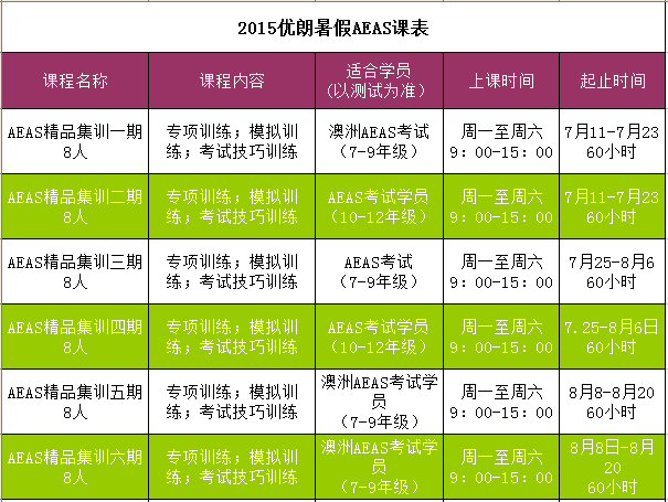 2015年暑假AEAS课表