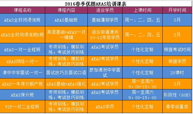 2016年春季AEAS培训最新课表
