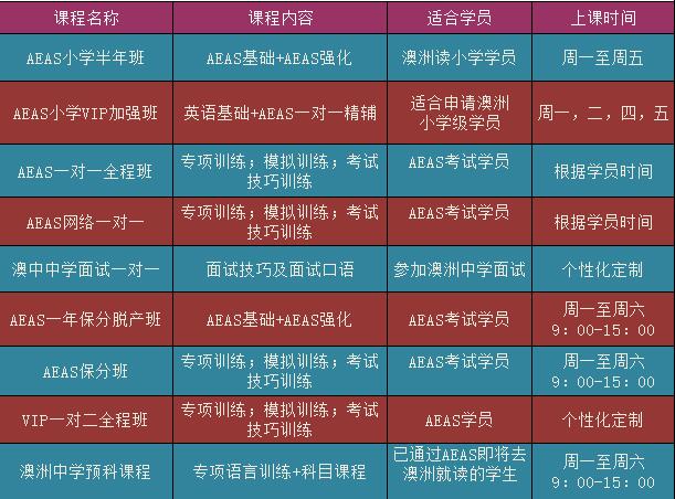 2016秋季AEAS培训课表