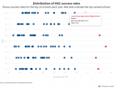 在过去的三年里 ,新州最顶尖学校James Ruse Agricultural High School的HSC成绩优秀率(success rate)已缩水近12%。但教育专家说有迹象表明其他学校正在迎头赶上这所20多年来一直领先的公立精英中学。 新州第 1学校