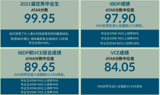 Yarra Valley Grammar YVG开设的课程非常广泛,可以满足每一位学生的独特需求,无论是学术课程,还是体育和文化追求等,都设定了高标准,而且积极引入新科目,以满足新时代学生的需求。 历届毕业生中,大多数学生继续升读高等教育,墨尔本大学和蒙纳士大学是最受欢迎的选择。 YVG在2021年VCE高考中,同样取得了优异的成绩: