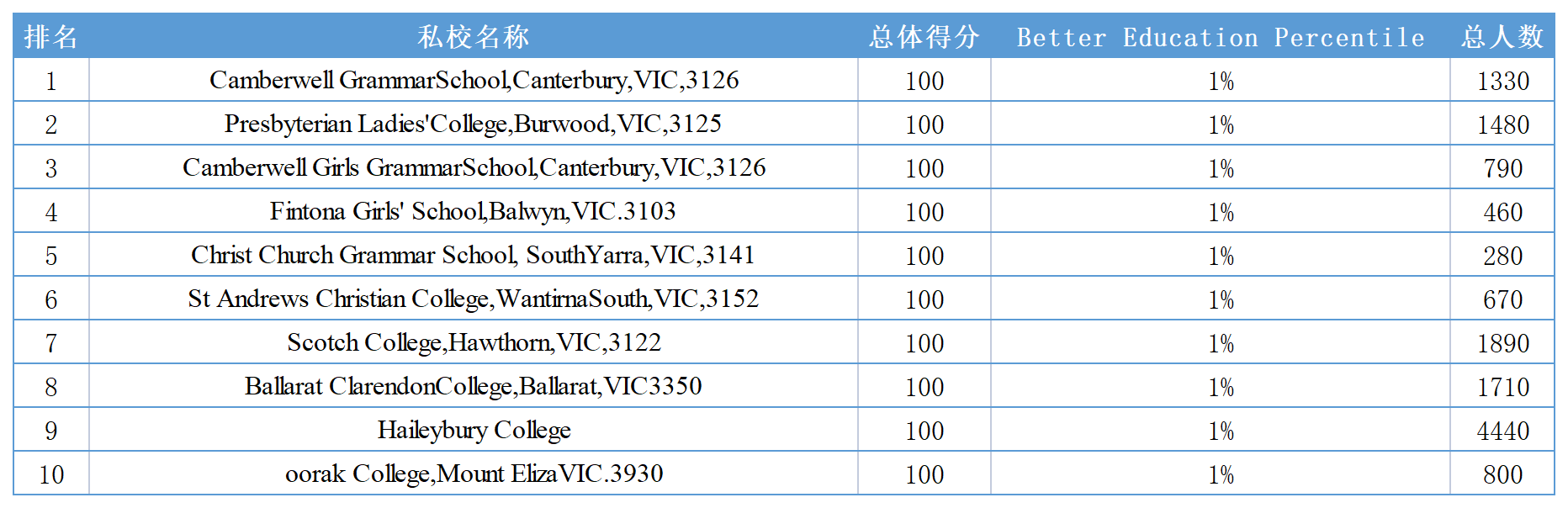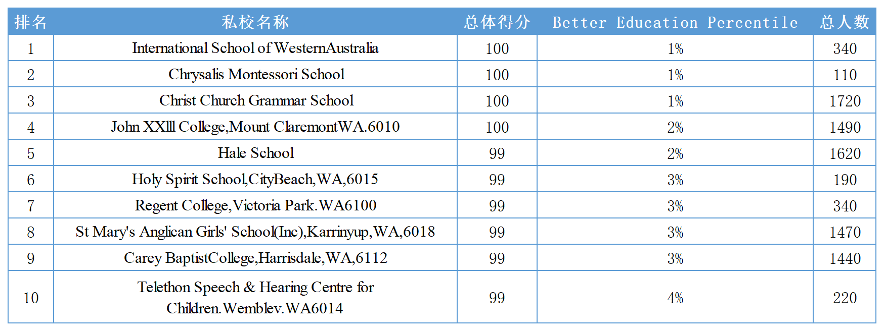 西澳大利亚州私立小学Top10