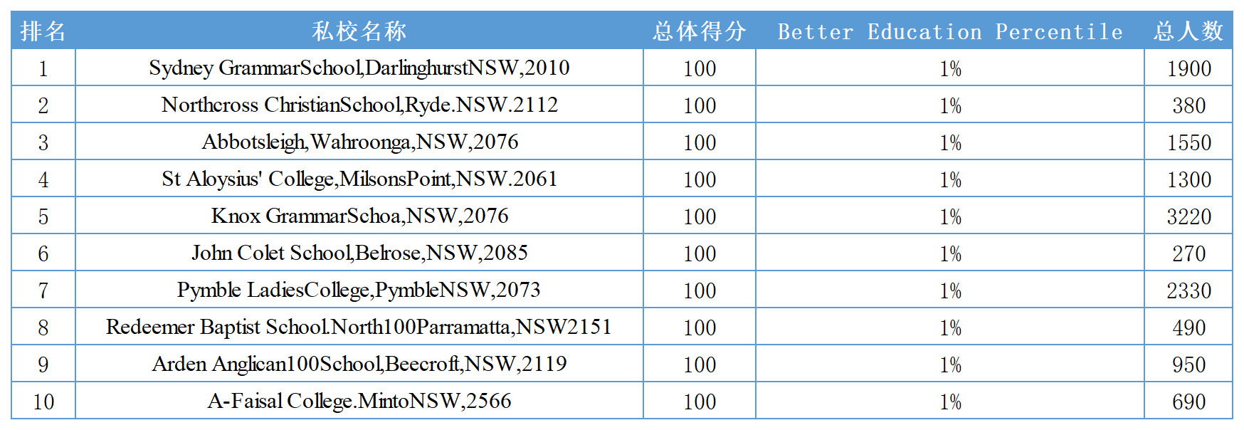 新南威尔士州私立小学Top10